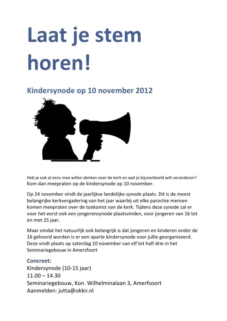 Op 10 november zal de Kindersynode plaatsvinden voor kinderen van 10 tot en met 15 jaar. Op 24 november zal de Jongerensynode voor jongeren van 16 tot en met 25 jaar plaatsvinden.