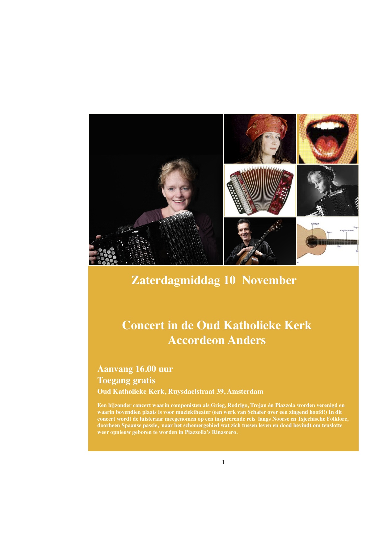 Muziek op zaterdagmiddag 10 november Gepubliceerd op door Webmaster OKK29 oktober 2012 Op zaterdagmiddag zal de kerk gevuld worden met prachtige accordeon muziek. Allen zijn welkom!